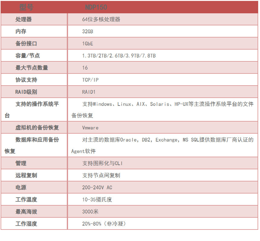 神州金沙js NCS NDP100(简称NDP100)系列是集备份服务器、备份介质、备份软件于一体的产品,集成的全局客户端重复数据消除技术,使 VMware 环境、远程办公室、企业应用程序、LAN/NAS服务器以及台式机/笔记本电脑的日常完整备份变得更加方便快捷,为关键业务提供全面的数据保护。