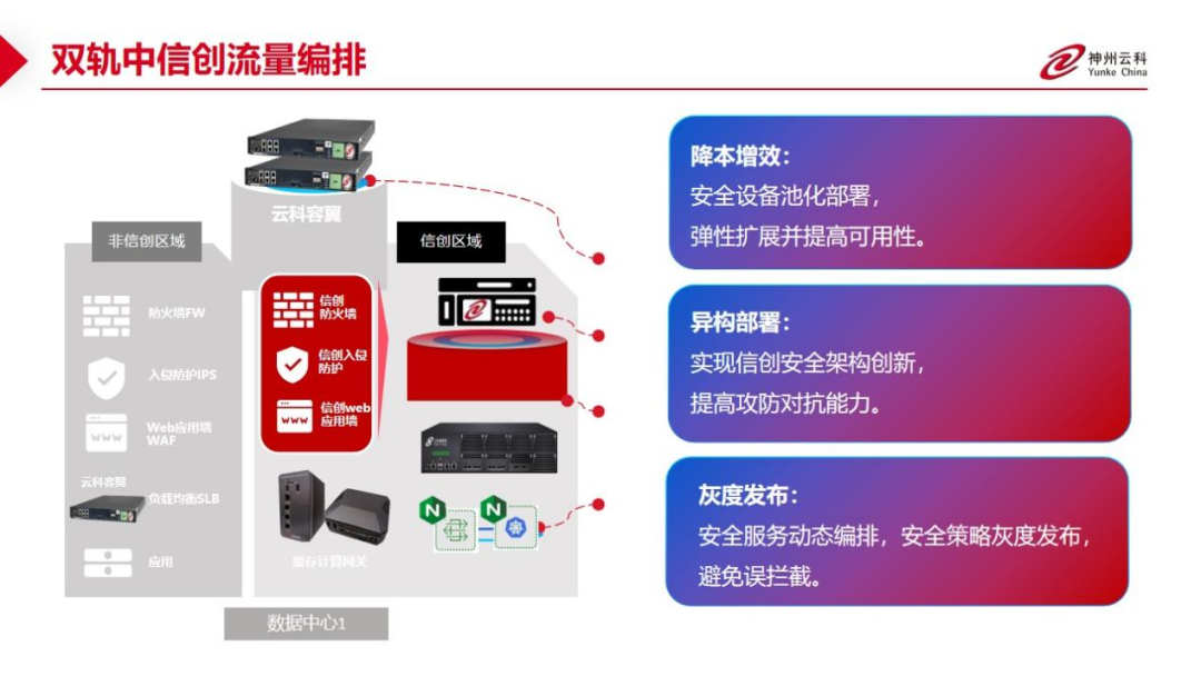 为了更好的适配双轨超高可用架构,神州金沙js应用交付控制器容翼系列产品和金沙js通明湖信创系列产品一方面可以保证信创产品的稳定性,弥合性能与企业应用要求的差距;一方面,当业务面对合规、风险和创新的挑战时,实现云原生可信开源与跨域协同。