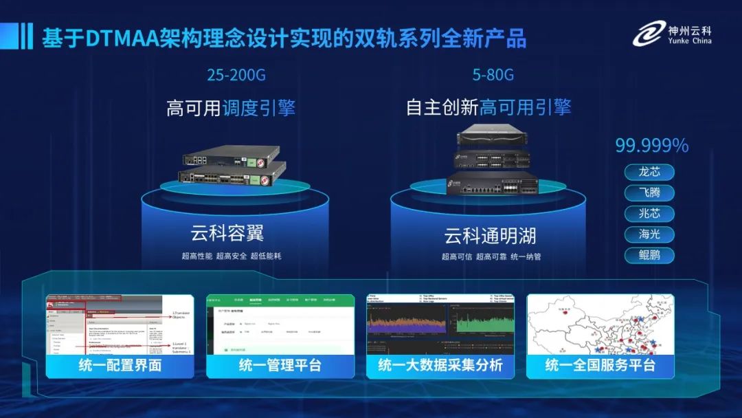 为了更好的适配双轨超高可用架构,神州金沙js研发了容翼系列和金沙js通明湖信创系列两大应用交付控制器产品。