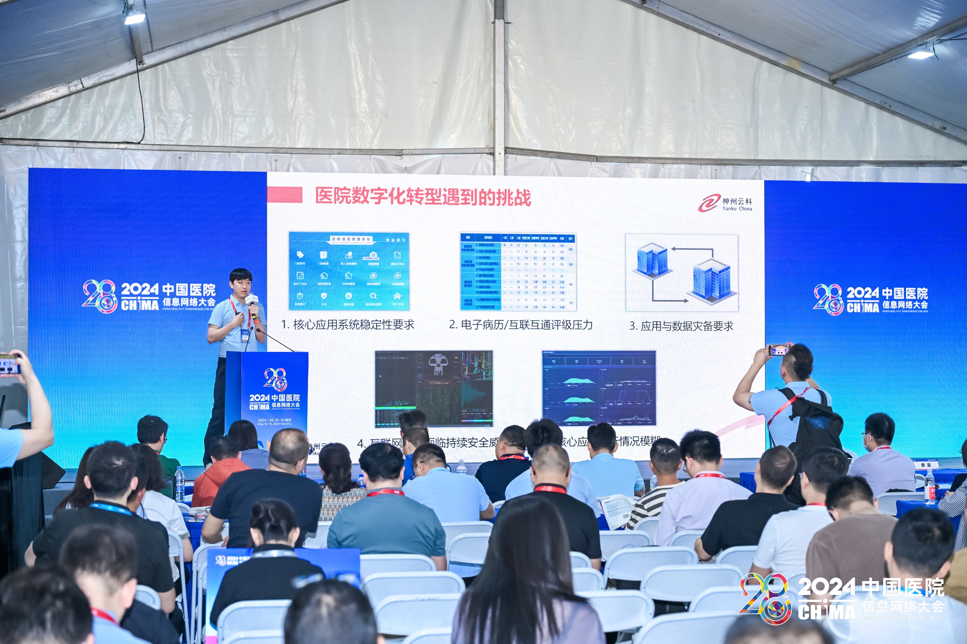 2024年5月17-19日,第28届中国医院网络信息大会(CHIMA2024)在南京圆满落幕。本次大会以新质生产力理论为指导,以深化应用,融合创新,用信息技术赋能医院高质量发展为主题,邀请国家卫生健康委相关司局领导、两院院士、国内外医疗卫生信息化领域知名专家学者、领军人物做主旨报告。在这场医疗信息化的年度盛会上,神州金沙js会上携其“保障医院核心系统健康无虞”主题演讲精彩亮相,成为展会的一大亮点。